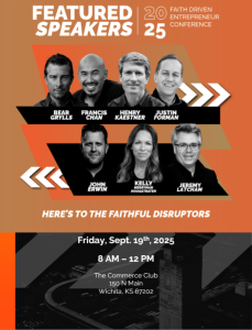 I wanted to personally invite you to the Faith Driven Entrepreneur Conference 2025 watch party that we are hosting on Friday, September 19th, at The Commerce Club at 150 N Main St., Wichita, KS, from 8 AM – 12 PM. Around the world, communities are being transformed by entrepreneurs and leaders who are choosing to believe that a life of faith is not a weakness in the business world, but actually their greatest strength. This event will bring together the best minds of the movement at Watch Parties all over the world.